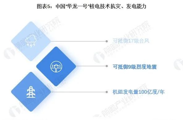 中国核电审批重启的13座新核电机组全部搭载第三代核电技术,其中8座为“华龙一号”设计。“华龙一号”是我国具有完全自主知识产权的三代压水堆核电创新成果,配备了世界上最坚固的盾牌——“双层安全壳”。可以抵御17级台风、9级烈度地震。不仅安全性高,“华龙一号”的发电能力也不容小觑。目前,“华龙一号”福建福清核电5、6号两台机组,每台机组每年能发电100亿度。而三峡大坝年平均发电量是900亿度,即是说9台“华龙一号”就能抵得上一个三峡大坝。
