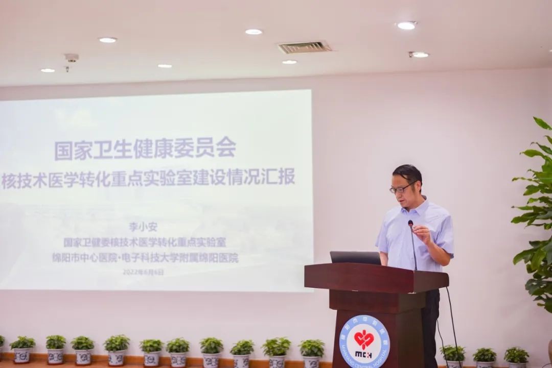 绵阳市中心医院重点实验室主任、科技科科长李小安从重点实验室立项背景及过程、建设现状、建设以来成果产出、3年目标规划等方面对国家卫健委核技术医学转化重点实验室建设情况进行了汇报。