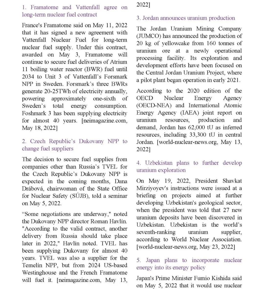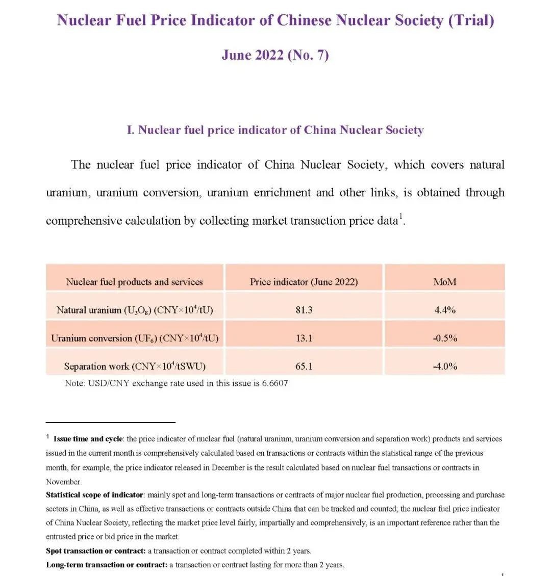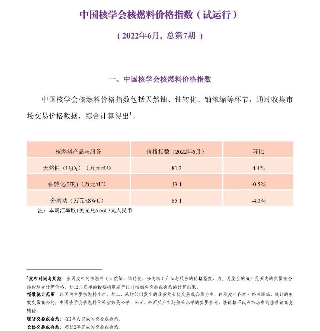中国核学会核燃料价格指数包括天然轴、轴转化、轴浓缩等环节,通过收集市场交易价格数据,综合计算得出。