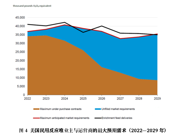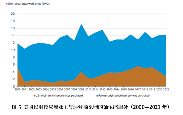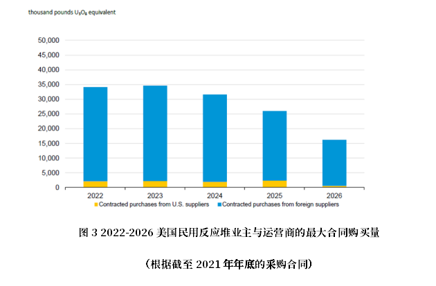 美国供应商(即中间商、转化服务供应商、浓缩服务供应商、制造商、生产商和贸易商)和COO每年都会从或向境外供应商采购或销售铀。2021年采购总量为4130万磅八氧化三铀当量,加权平均价格为33.26美元/磅;2021年销售总量为750万磅,加权平均价格为35.82美元/磅。