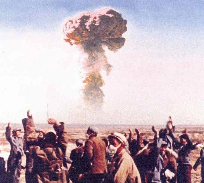 中国第一颗原子弹爆炸成功现场欢呼的人群