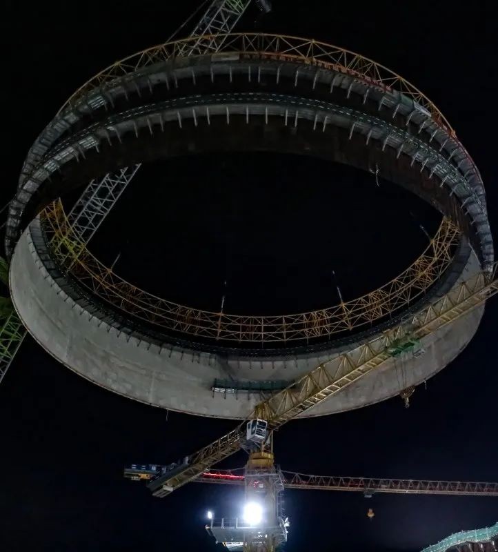由于近期现场风力不稳定,华能海南昌江核电有限公司联合现场各参建单位研究制定应对措施,密切关注现场风速变化情况,在做好现场夜间照明等各项准备工作的前提下,决定在6月17日晚22时35分开始模块五的吊装,在经过起吊、变幅、旋转、提升、吊车行走、就位等一系列动作后,钢衬里模块五与模块四精准对接。