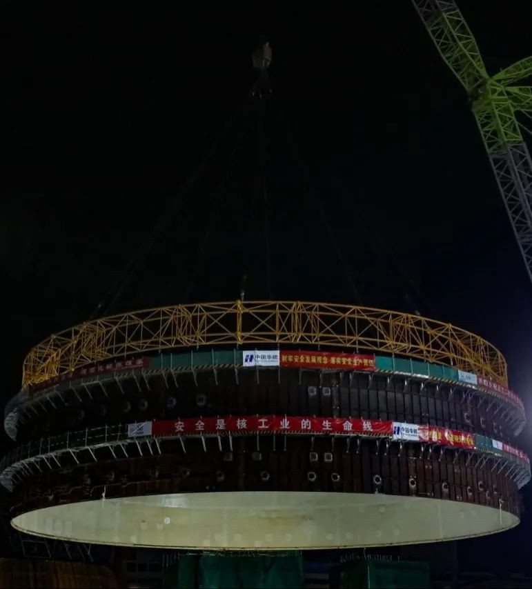 2022年6月18日1时48分,海南昌江核电二期工程项目3号机组安全壳钢衬里最后一个模块-模块五顺利吊装就位,历时3小时13分,为后续钢衬里第10段吊装就位里程碑节点的按期实现创造了有利条件。