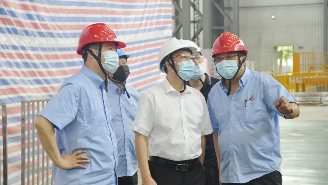 皮建忠一行参观了西核设备东区的生产设施,详细了解了公司承制中核工程专项产品的进展情况,并与承制专项产品制造任务的事业部负责人进行了深入交流。