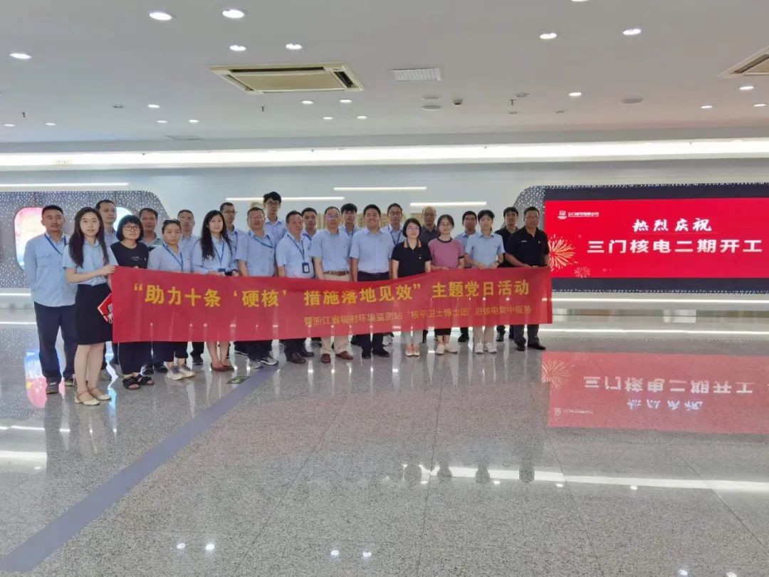 在中国共产党成立101周年之际,生态环境部辐射环境监测技术中心(浙江省辐射环境监测站,以下简称辐射环境监测技术中心)贯彻落实党中央、国务院、浙江省委省政府关于稳住经济大盘的决策部署,坚持“党建红引领生态绿”工程,为确保浙江省生态环境厅助力经济稳进提质攻坚行动“十条政策措施”落地见效,组建了由电离室党支部、质信室党支部5名博士组成的“核平卫士博士团”,走进三门核电为三门核电二期顺利开工提供集中服务,联合开展“助力十条‘硬核’措施落地见效”主题党日活动。三门核电有限公司相关负责人及环境应急党支部、化学党支部的党员代表参加了此次活动。