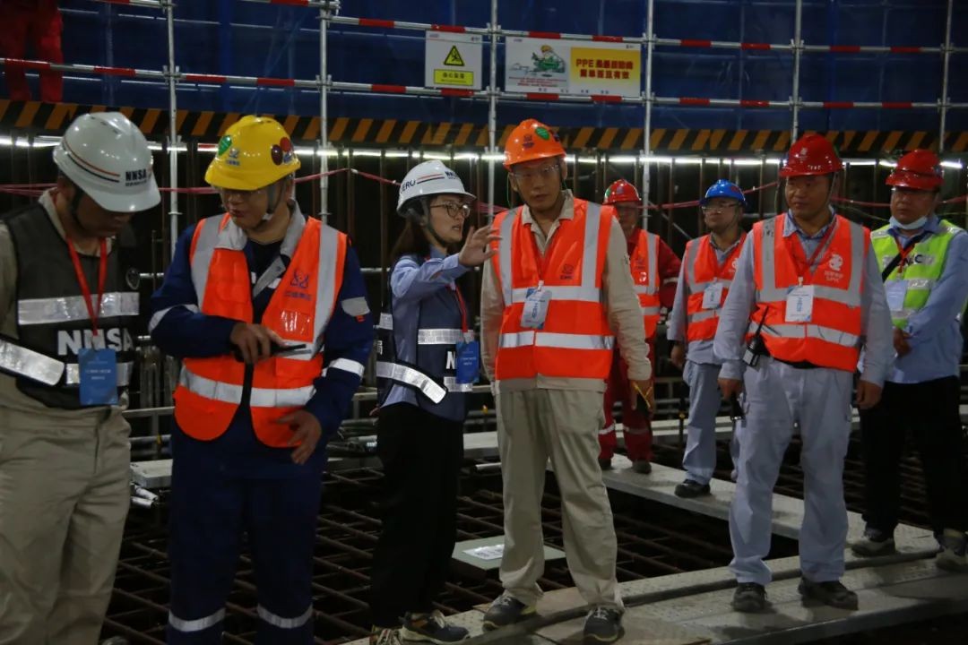 2022年7月1日4时58分,伴随着三门湾畔的第一缕晨曦,三门核电厂3号机组核岛反应堆厂房筏基底板第一罐混凝土(FCD)浇筑工作顺利结束。生态环境部华东核与辐射安全监督站(以下简称华东监督站)的监督员们对近3天的连续浇筑过程进行了现场监督。6月28日,三门核电二期工程正式开工建设,随着3号机组核岛反应堆厂房筏基底板浇筑第一罐混凝土,华东监督站的监督员们紧锣密鼓地投入到FCD工作的现场监督中。他们发扬“严慎细实”的工作作风,不仅白天顶着烈日赴施工现场进行监督,还专门采取“四不两直”的方式开展夜查,对混凝土现场制备、混凝土浇筑过程以及现场人员配置情况等工作进行了认真检查,为保证三门核电厂3号机组建造质量,最终实现运行安全夯实基础。