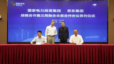 7月5日、6日,国家电投分别与阿里巴巴集团、京东集团举行签署战略合作暨三网融合全面合作协议签约仪式。国家电投董事长、党组书记钱智民分别与阿里巴巴集团董事会主席兼首席执行官张勇、京东集团CEO徐雷见证签约。国家电投副总经理、党组成员徐树彪分别与阿里巴巴集团副总裁陈龙、京东集团执行副总裁王培暖代表双方签署战略合作协议。