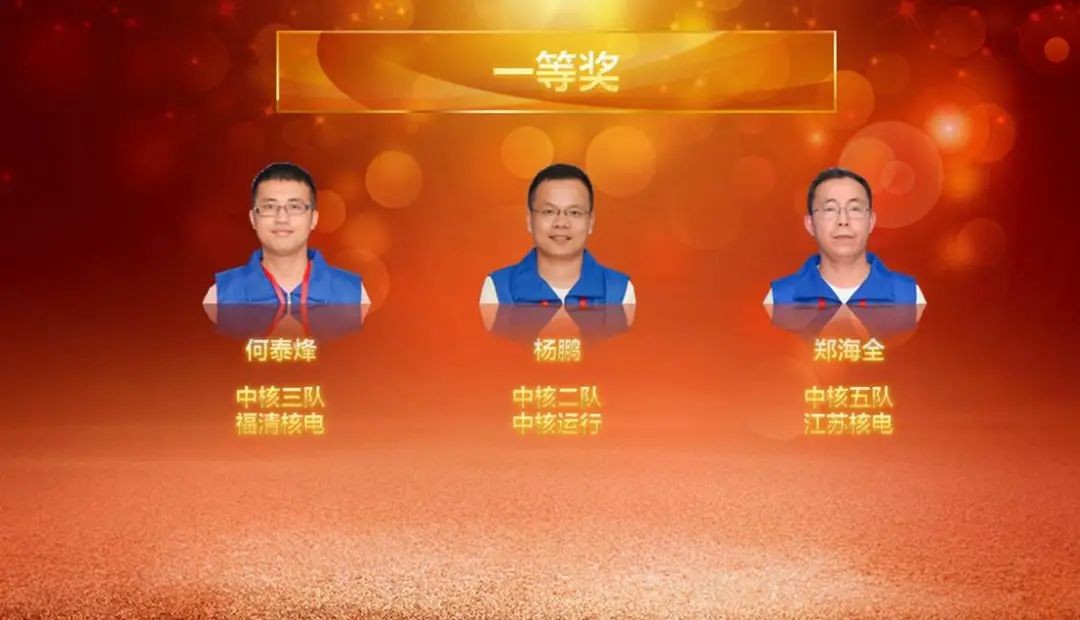 福清核电-中核三队-何泰烽、中核运行-中核二队-杨鹏、江苏核电-中核五队-郑海全荣获一等奖