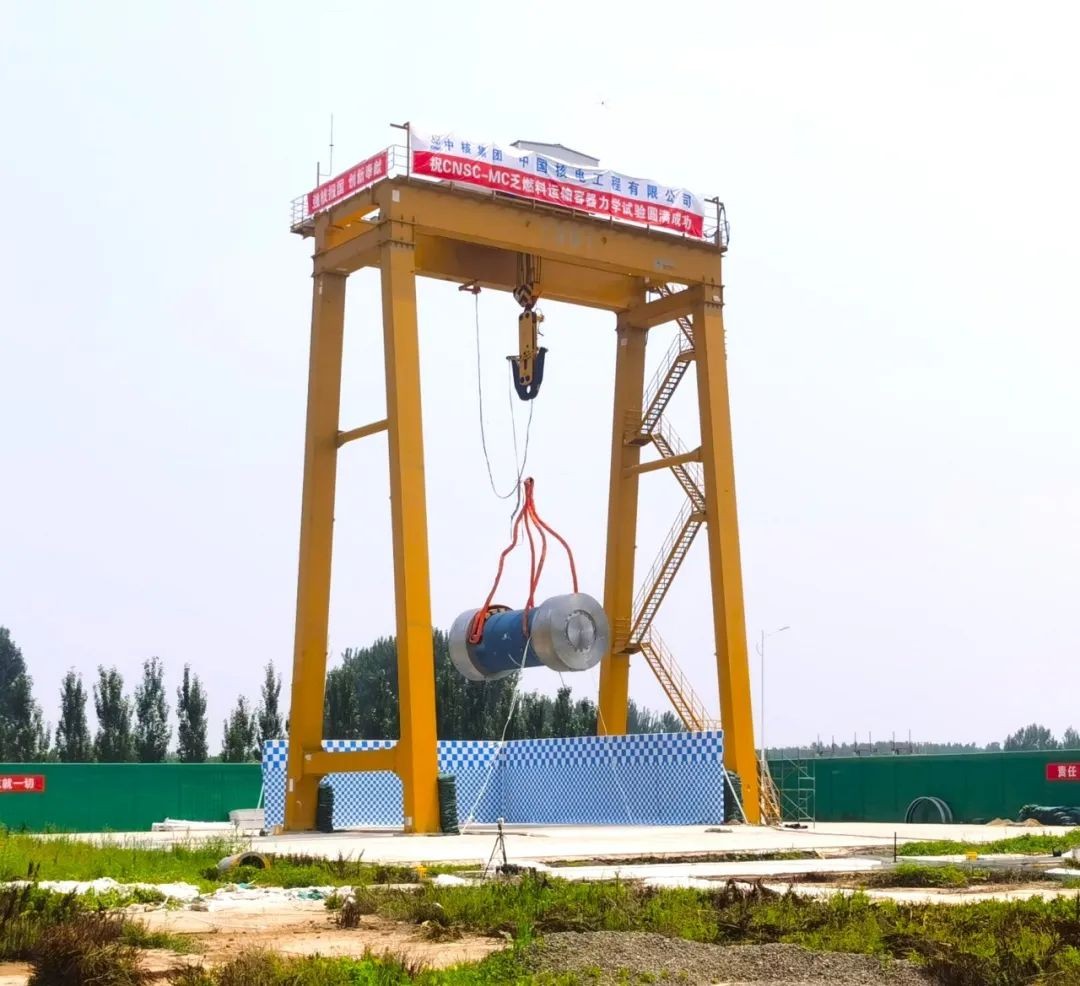 2022年7月8日至9日,国家原子能机构核能开发“球墨铸铁乏燃料运输容器研制”科研项目成果完成首台百吨级原型容器样机力学试验,为验证容器结构设计合理性、减震功能有效性和力学模拟计算的准确性奠定坚实基础,也为后续研发和产业化提供依据参照。