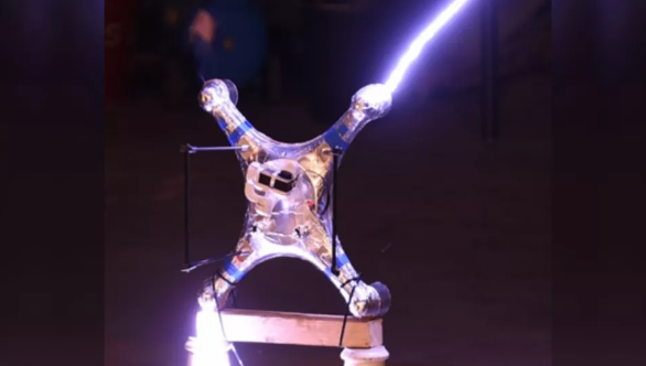 曼彻斯特大学高压实验室中的一架被屏蔽的无人机。