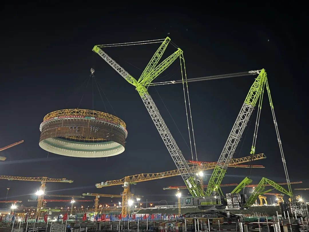2022年7月16日晚19时16分,海南昌江核电4号机组核岛钢衬里模块二正式起吊,历经试吊、起钩、提升、旋转、变幅、行走等一系列动作,历时2小时整,当晚21时16分顺利就位,与下部钢衬里模块一精准对接,为后续海南昌江核电4号机组核岛人员、应急闸门套筒安装打下坚实基础。