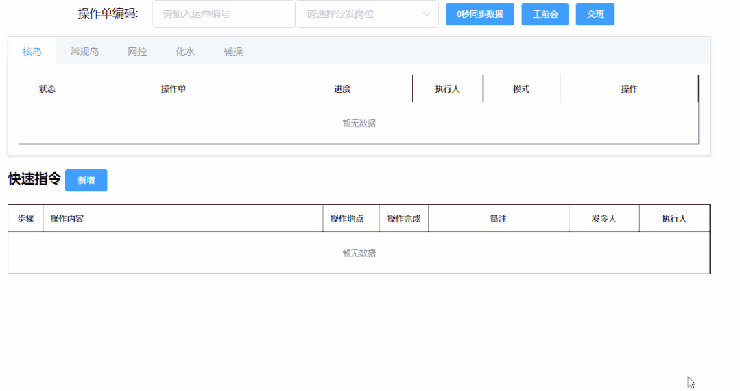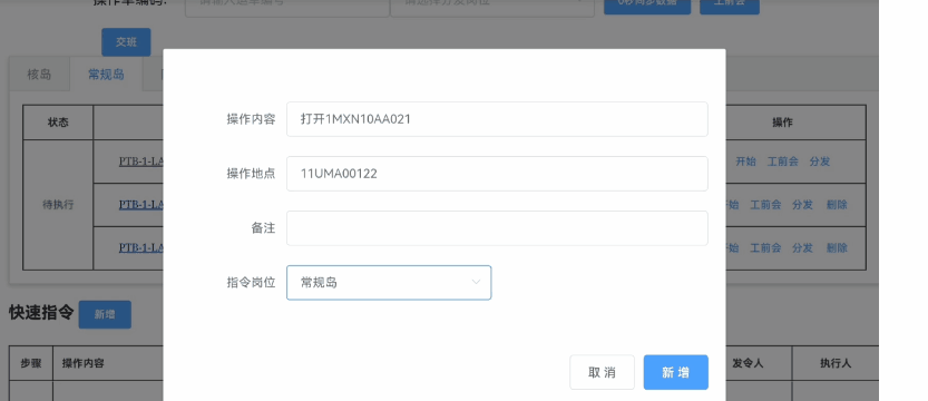 快速指令模块和临时操作单编写模块分别用于单一指令和临时操作单在线使用,实现操作指令的标准化,改变原有的电话下指令方式,大大降低人因失误可能性。