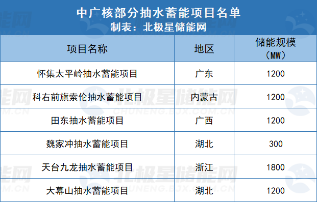 目前中广核参与投建运营的抽水蓄能电站项目共有6.9GW,详情如下: