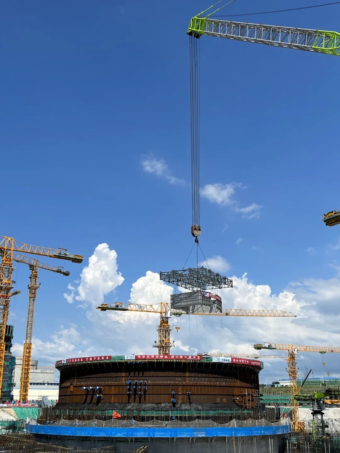 2022年7月23日15时41分,在历经3天的艰苦奋战后,海南昌江核电4号机组核岛厂房内置换料水箱第三个模块稳稳地就位在基础上,至此R141~R143房间模块整体全部吊装完成,提前三级进度计划28天完成MKJ考核点。本次吊装标志着4号机组核岛厂房不锈钢水池施工正式拉开序幕。