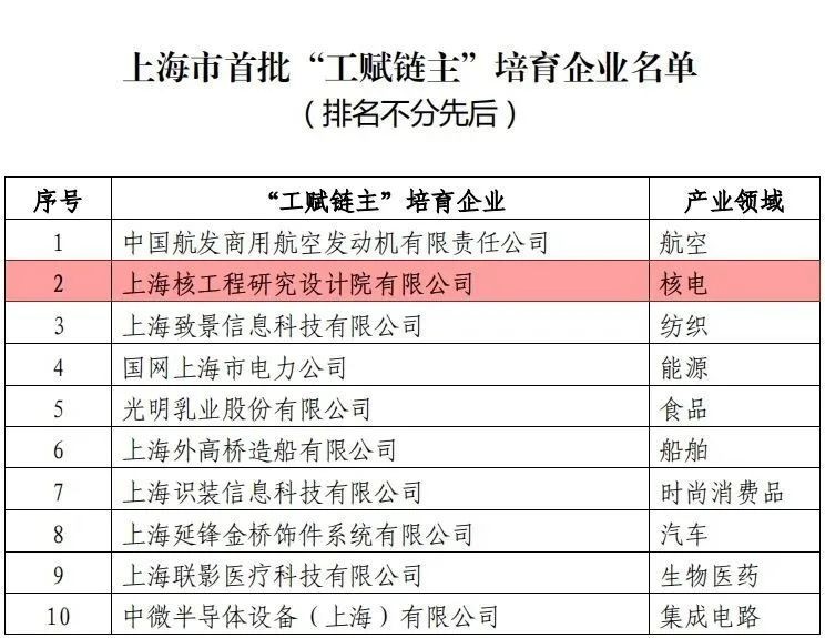 近日,上海市发布首批“工赋链主”培育企业名单,上海核工程研究设计院是核电产业唯一的入选企业。