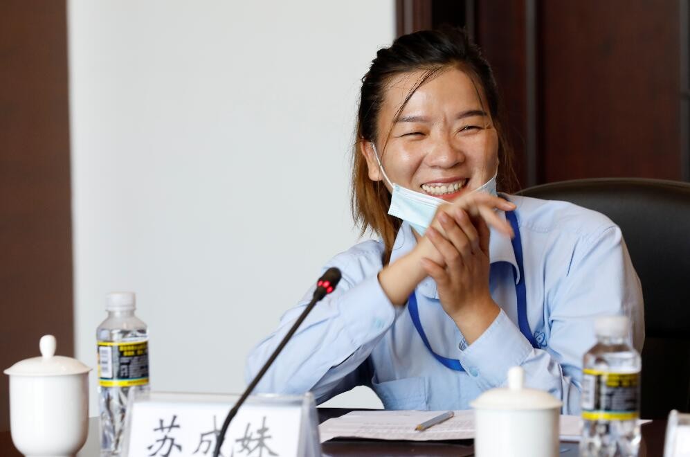 苏成妹在座谈会上分享她在海南核电工作的感受。