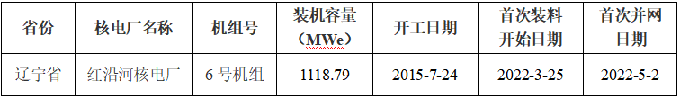 4月21日,红沿河核电6号机组反应堆首次达到临界状态,5月2日机组首次并网成功,6月23日具备商运条件。