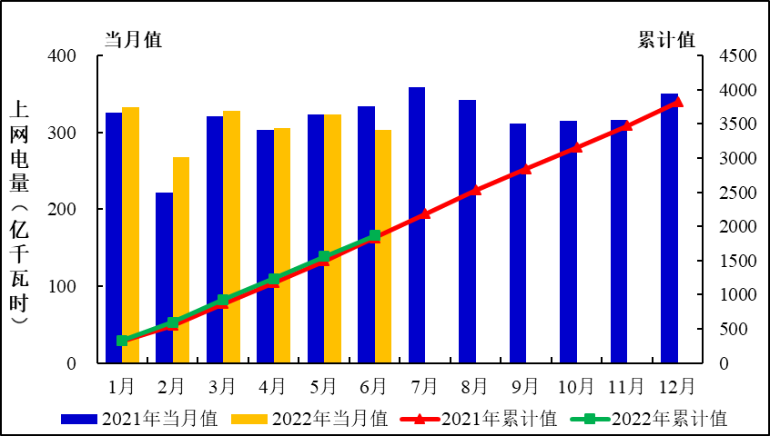 图3:2021年1月至2022年6月全国运行核电机组上网电量趋势