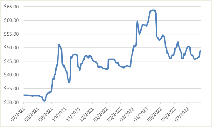 7月27日,继6月后美联储再度加息75基点,将联邦基准利率提高到了2.25%-2.5%区间。即便如此,因市场之前预期本次美联储将大概率加息100基点,最终“仅”加息75基点促股市不跌反升。受大盘带动,本周天然铀投资基金斯普罗特(SPUT)股价上涨11.55%,虽然股价仍小于NAV,没有新融资,但难免给天然铀市场带来一些情绪影响。