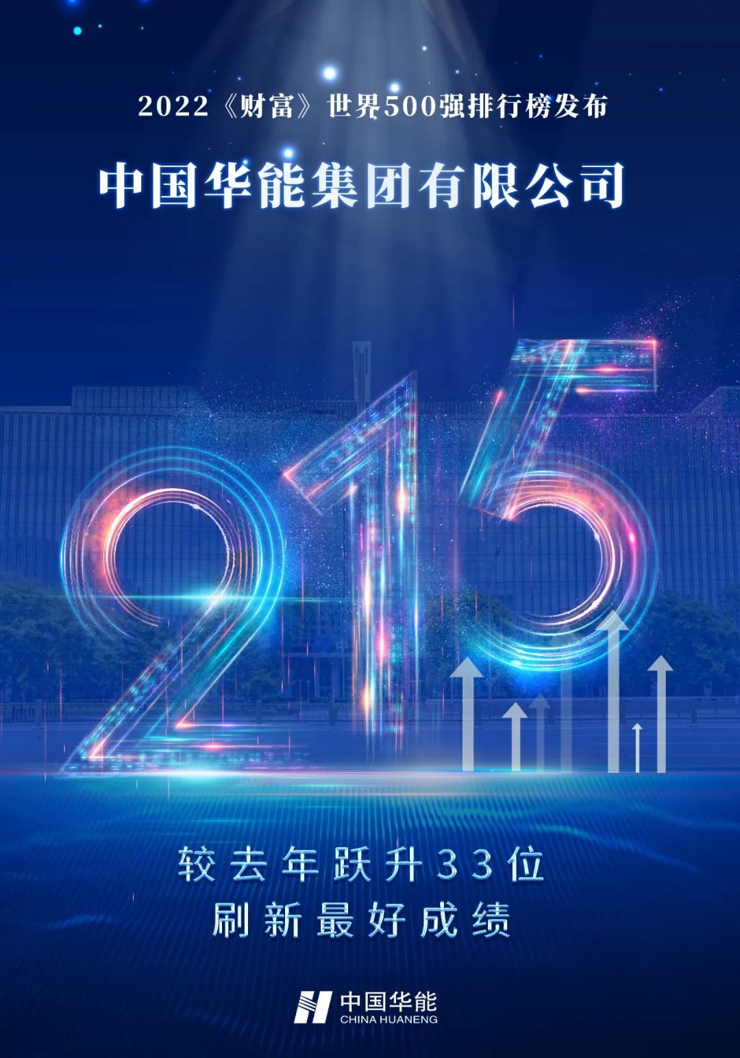 北京时间2022年8月3日,《财富》世界500强最新榜单发布,中国华能集团有限公司排名第215位,较去年跃升33位,刷新最好成绩!
