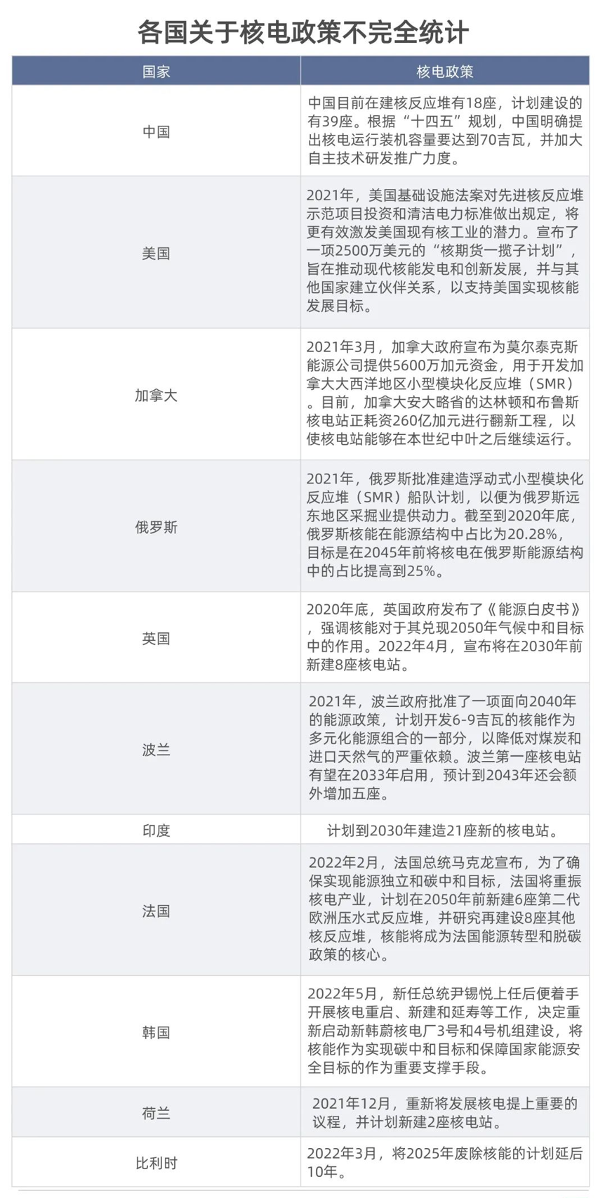 数据显示,截至今年4月,全球在建核电装机规模达1亿千瓦,土耳其等30多个没有核电站的国家计划新建核电站,全球核电产业正在加速回暖中。