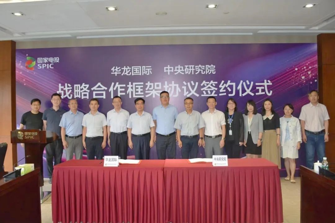 8月4日,华龙国际与国家电投中央研究院在北京召开交流座谈会,并在国家能源局的见证下签署战略合作框架协议。华龙国际党委书记、总经理高立本,国家电投中央研究院党委书记、董事长范霁红代表双方签约。国家能源局核电司调研员王一兵,华龙国际党委委员、副总经理霍建明,国家电投中央研究院党委委员、副总经理沈峰等领导出席签约仪式。