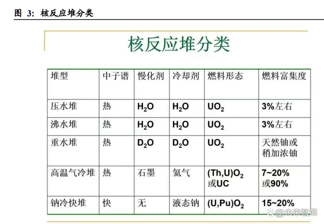 我国四代技术世界领先。目前国内共有 3 种四代核电技术。2011 年 7 月 21 日,我 国首座钠冷快堆——中国实验快堆成功实现并网发电,将天然铀资源的利用率从压 水堆的 1%提高到 60-70%。2021 年 12 月 20 日,石岛湾高温气冷堆核电站 1 号反应 堆首次并网成功,标志着全球首座具有第四代先进核能系统特征的球床模块式高温 气冷堆,在我国实现了从“实验室”到“工程应用”质的飞跃。世界首座钍基熔盐 堆——甘肃武威钍盐核反应堆主体工程已于 2021 年 5 月基本完工,由于该技术使 用氟化盐作为冷却剂,无需耗费大量水资源,对核电站的选址要求更低,应用潜力 巨大。