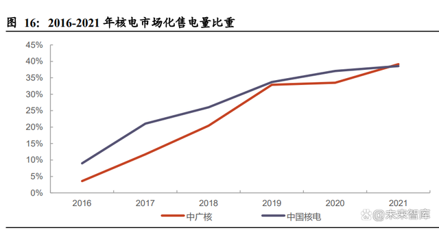 核电市场化改革持续推进。2013 年以前,核电站的上网电价较多采用“一厂一价” 定价方式,但在该定价模式下,核电站建设超期、超预算的现象屡见不鲜。2013 年 6 月,国家发改委将全国核电核定的标杆电价确定为每千瓦时 0.43 元,但同时规定, 核电含税价格与基础的火电价格采取对标,实行“两价取低”的定价策略。核电上 网电价基本按照“四六分”的定价机制,约 60%按发改委核定电价,剩余部分市场 化定价。自 2020 年起,煤电价格联动机制取消,定价机制由标杆上网电价改为“基 准价+上下浮动”的市场化机制,市场化交易步伐加快。2022 年 1 月,国家发展改 革委发布了《关于加快建设全国统一电力市场体系的指导意见》,提到要“培育多 元竞争的市场主体。有序放开发用电计划,分类推动燃气、热电联产、新能源、核 电等优先发电主体参与市场,分批次推动经营性用户全面参与市场,推动将优先发 电、优先购电计划转化为政府授权的中长期合同。”