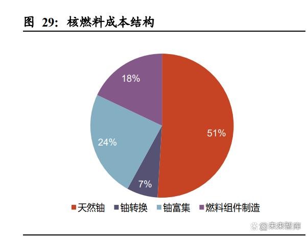 核电产业链上游为核燃料循环,即铀的采掘提取、燃料组件的加工制造及乏燃料循 环处理,中游为核电设备,包括核岛设备、常规岛设备及辅助设备,下游为核电站 运营管理,包括核电站的设计建造、运营发电。