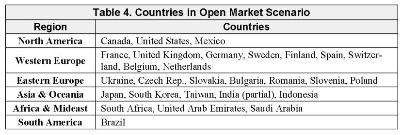 为了进行分析,公开市场定义为传统上具有竞争力的市场,以及伴随俄乌冲突转变为具有竞争力的市场。下表为全球公开市场的国别清单。