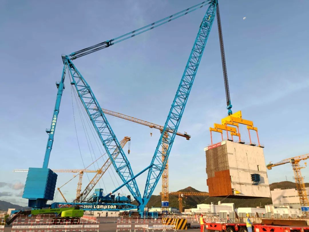 中核机械工程积极践行中核集团“六大控制七个零”高质量精细化工程项目管理模式,以专业能力助力核电建设模块化工程建设。本次吊装在充分借鉴三门、海阳一期大件吊装工程经验上,公司不断提升大型模块吊装能力,主动优化、持续改善,相对一期工程,提升了该模块的吊装效率,严格保障施工的安全质量。