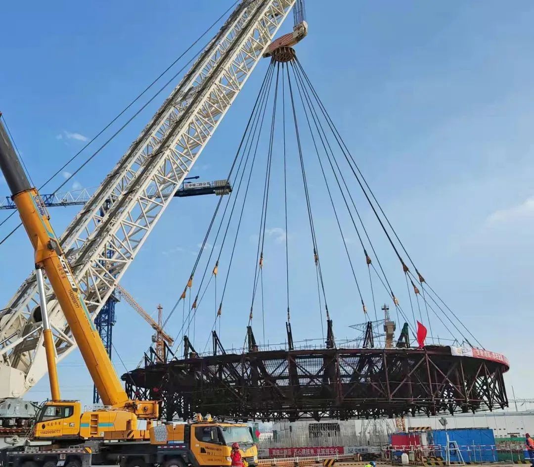同日8时19分,海阳核电二期3号机组CR10模块成功吊装就位,吊装用时2小时12分,设备总重量396吨,直径42米。