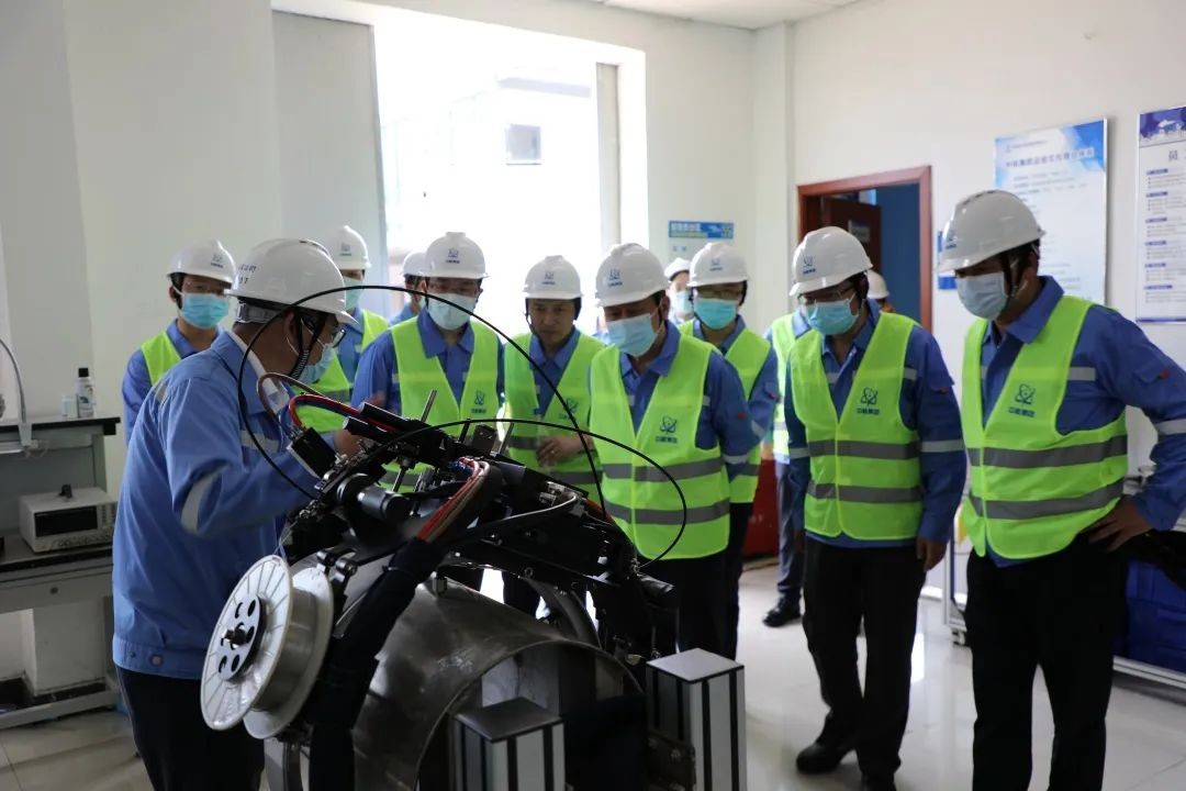 期间,郝坚一行前往中核五公司制造分公司查看管道预制情况,参观并调研了公司智能装备装配及调试车间、智慧工地展厅、焊工考试及试验车间、大师工作室等建设情况,对公司科技创新工作、核电与民用业务两翼齐飞给予了充分肯定。