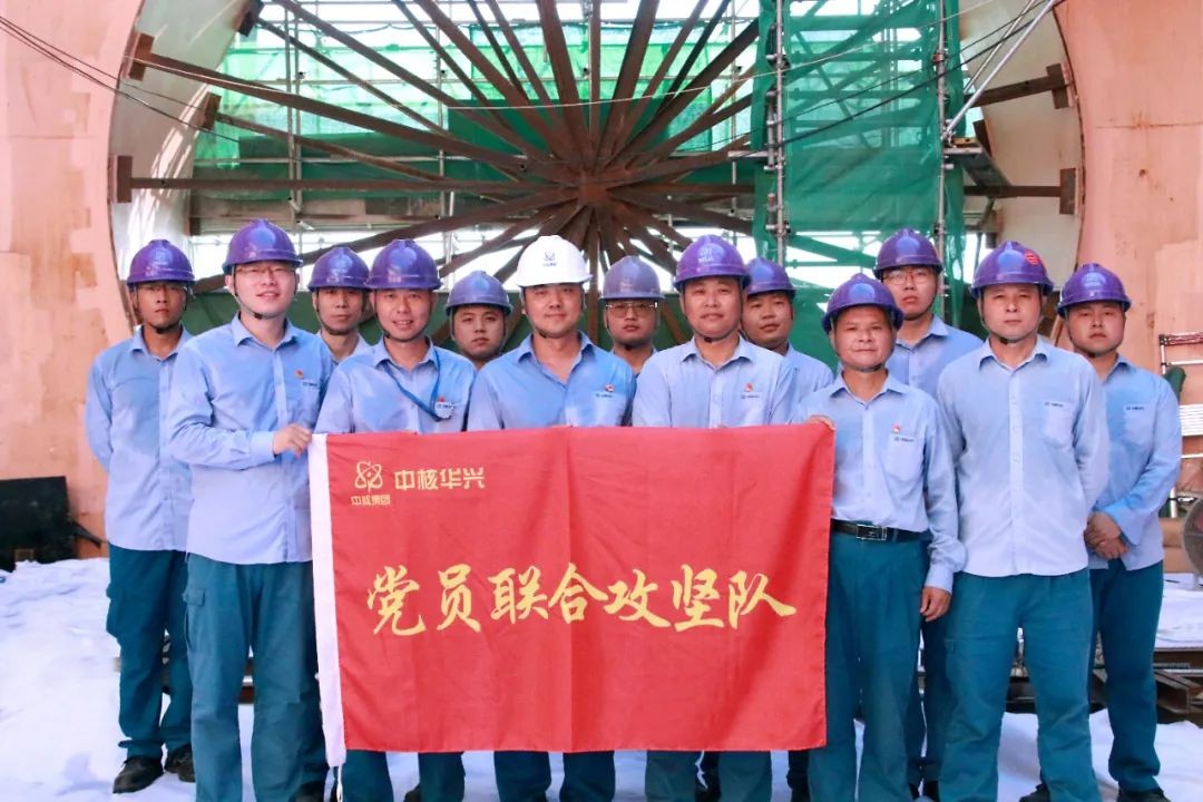 “关键时刻,党支部要发挥战斗堡垒作用,党员干部要站出来,冲在前”,项目党委书记张蓉在支部结对共建会议上强调。面对曲率钢筋绑扎施工难度大,钢筋密集,拉筋满布,SG模块插筋每一根均精确定位,埋件安装精度要求极高等重难点问题,中核华兴项目部迅速组织成立党员联合攻坚队,将党建融入项目生产,压实党员责任,激发党员工作热情和担当,引导党员干部深入一线做表率、抓攻坚,确保设计与现场技术前后台联动,共克施工技术难题,为项目生产提供技术保障。