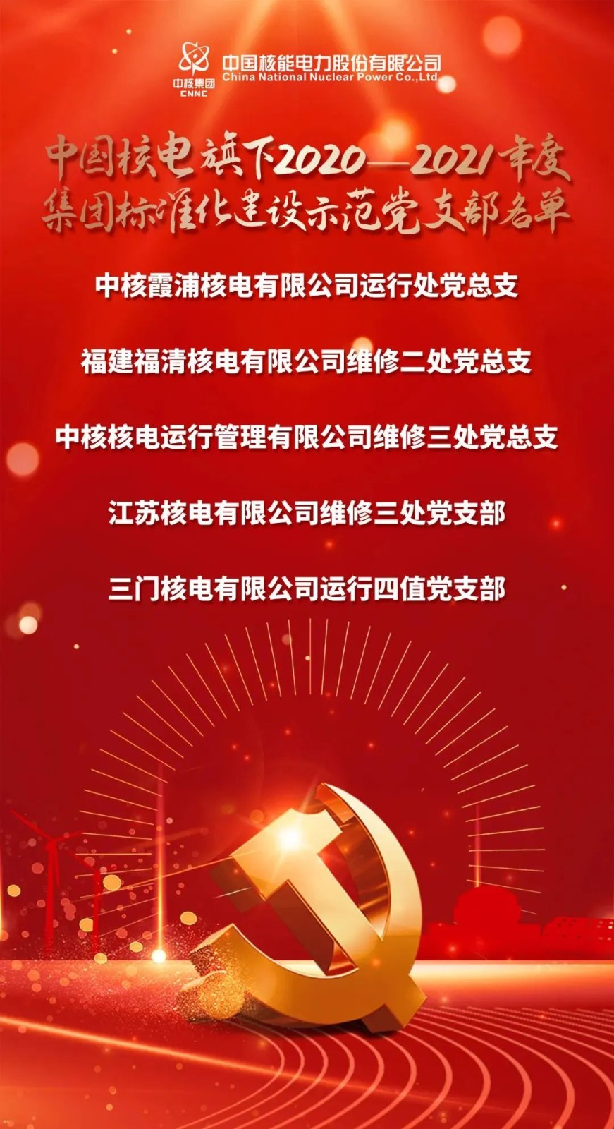 近日,中核集团发布2020-2021年度标准化建设示范党支部名单。中核集团福清核电维修二处党总支被评为中核集团2020-2021年度标准化建设示范党支部。
