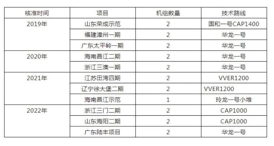 自2019年至今,我国连续核准了11个核电工程项目,包括21台机组,覆盖广东、浙江、福建、山东、海南等地。