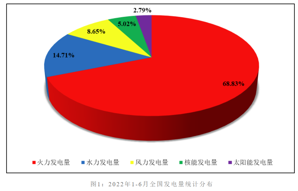 2022年上半年,全国累计发电3.96万亿千瓦时,其中火力发电占比高达68.8%,水电14.7%,风电8.65%,太阳能占比2.79%,而核能占比为5.02%。
