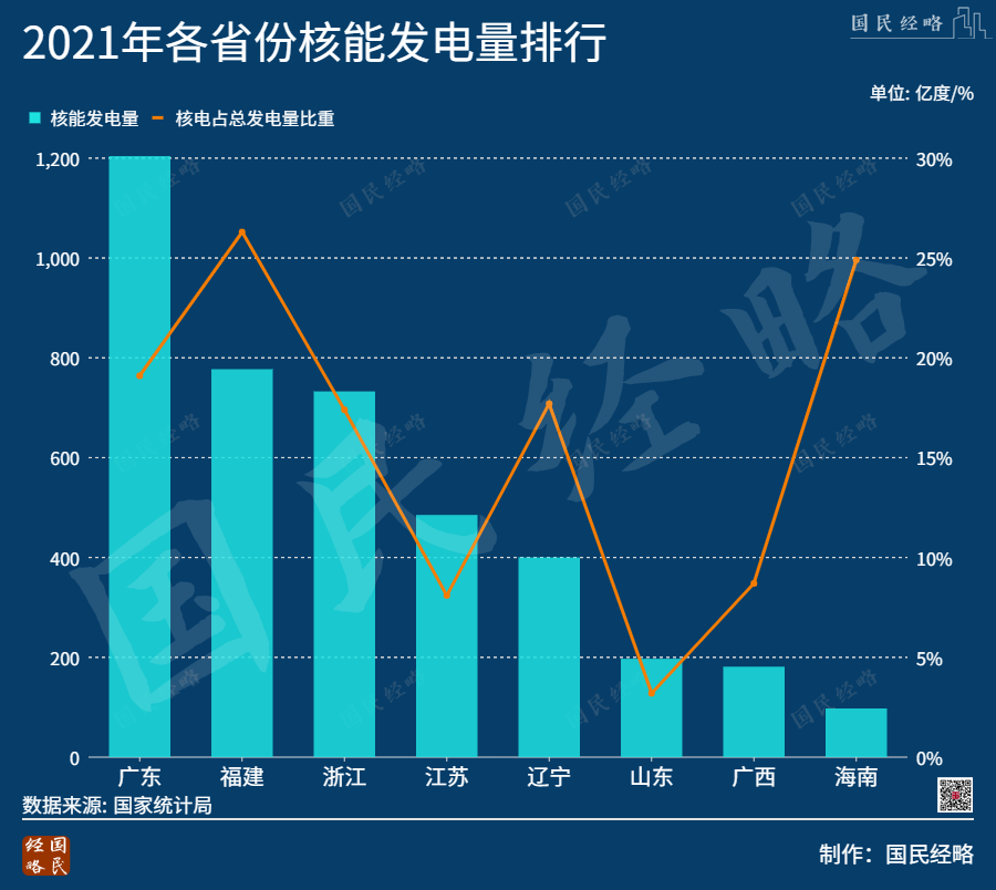 作为核能发电量第二高的福建,核电占全省发电量的比重高达26.3%,位居全国之首。