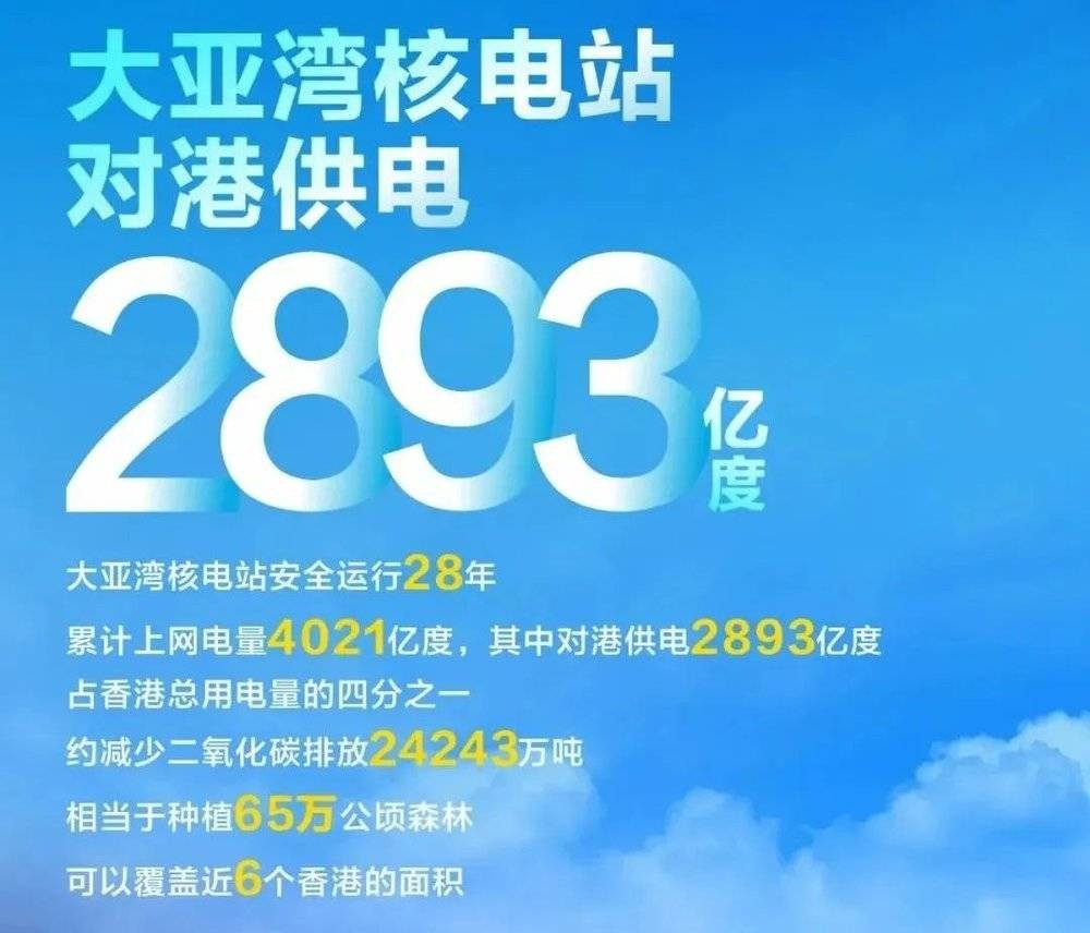 数据显示,自1994年投入运营以来,大亚湾核电站已持续对港供电28年,在4021亿度的累计上网电量中,对港供电达2893亿度。