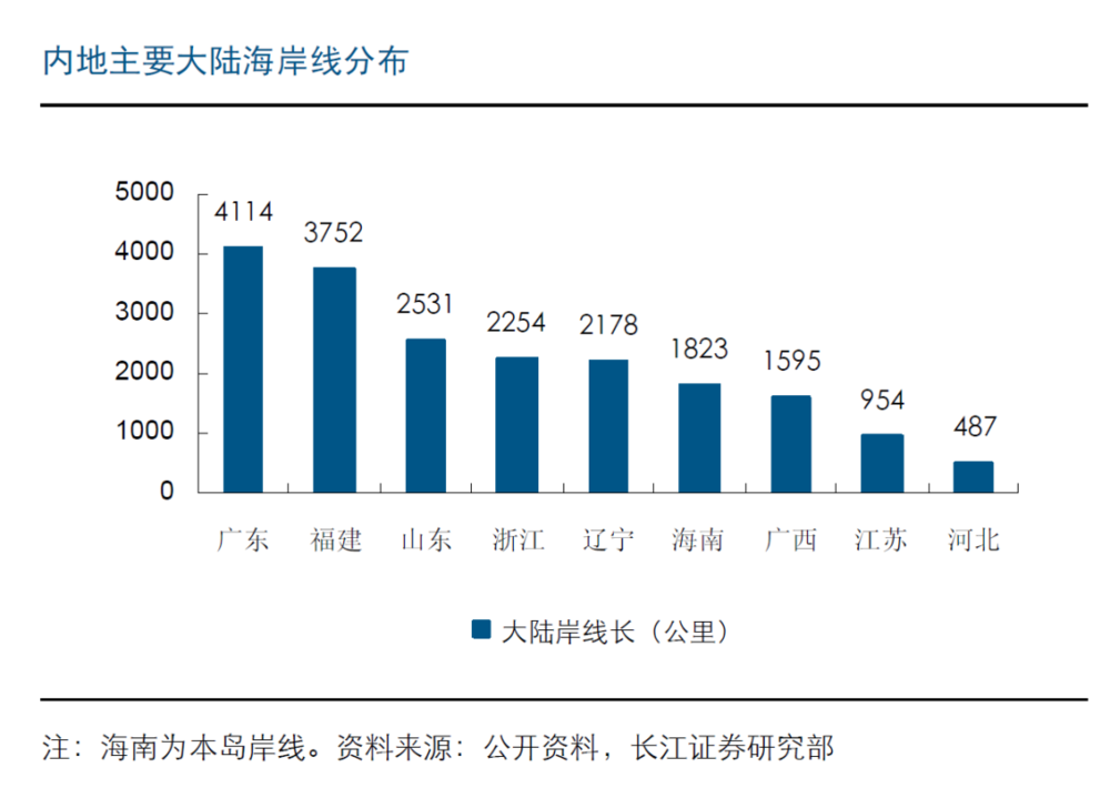 广东海岸线总长位居全国之首,拥有4114公里海岸线和41.93万平方公里辽阔海域,港湾众多,岛屿星罗棋布。