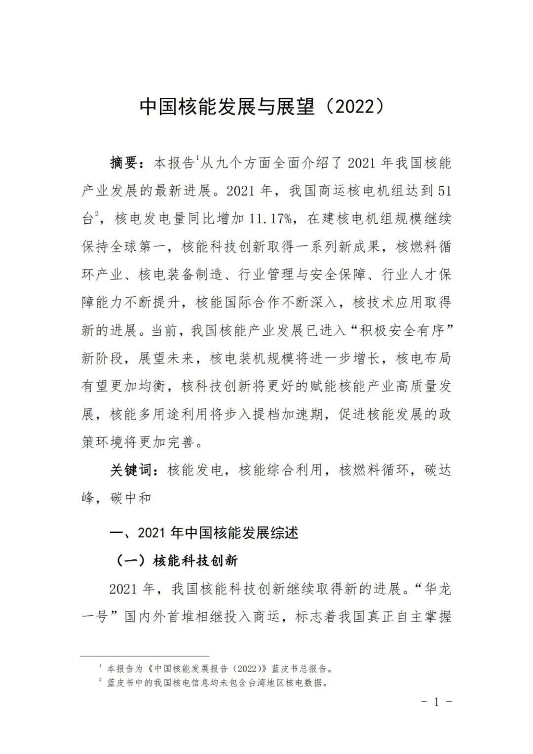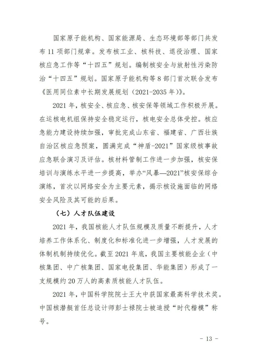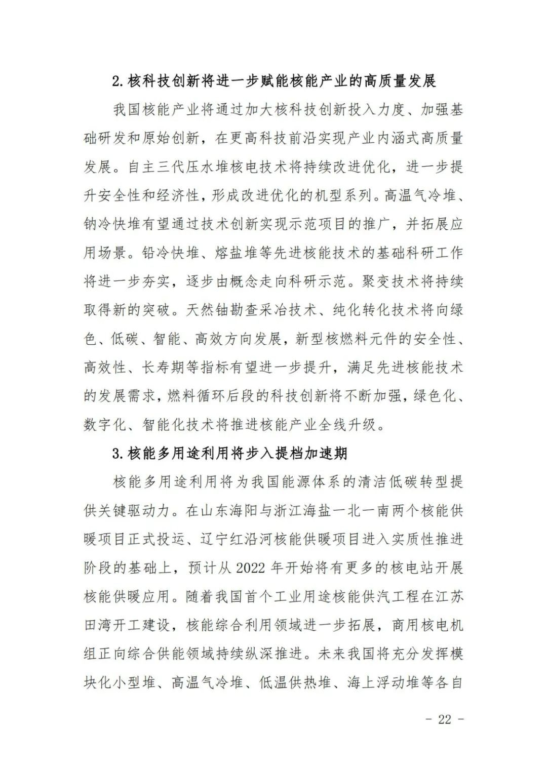 本报告从九个方面全面介绍了2021年我国核能产业发展的最新进展。