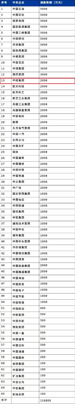 中核集团心系灾区群众,积极履行社会责任,捐款2000万元,全力支持抗震救灾和灾区生产生活秩序的尽快恢复。