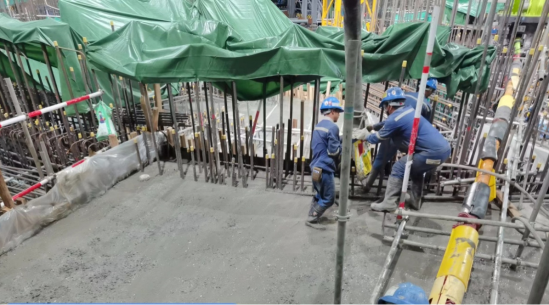 八月份以来,海南省疫情形势严峻,施工现场响应防疫要求进行封闭管理,各参建单位近千人无法进入施工现场,导致反应堆施工产业工人、管理人员严重不足。在此情况下,昌江公司发动党员干部冲锋在前,千方百计组织参建各方积极推动反应堆厂房内部结构7.5米板施工作业,通过24小时不间断施工,缩短施工工期;施工方案优化,提前开展支撑架支设,确保满堂架施工不占主工期;优化埋件测量放线工艺,在底板同时完成底埋、顶埋定位,既提高埋件安装精度又缩短测量放线时间;全过程跟踪梳理先决条件、过程制约因素等,每日跟踪日计划完成情况;保障前后工序高效衔接,土建工程师24小时待命进行质量计划消点,验证现场实体与图纸、方案要求的一致性,及时纠正工程隐蔽前的质量问题,保质保量完成实体验收。各参建单位人员直面挑战、连续奋战,历时15天安全优质完成施工任务,较原定工期节省25天。7.5米板的浇筑完成为反应堆厂房后续主设备引入及穹顶吊装奠定了坚实基础。