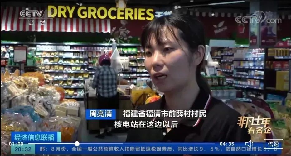 2015年5月7日,全球首台自主核电华龙一号核电机组在福清开始建设,到2021年正式投入商业运行。核电站所在的前薛村一下子就热闹起来,当地村民周亮清两口子也回到了家乡,丈夫去核电上班,周亮清开了一家超市。