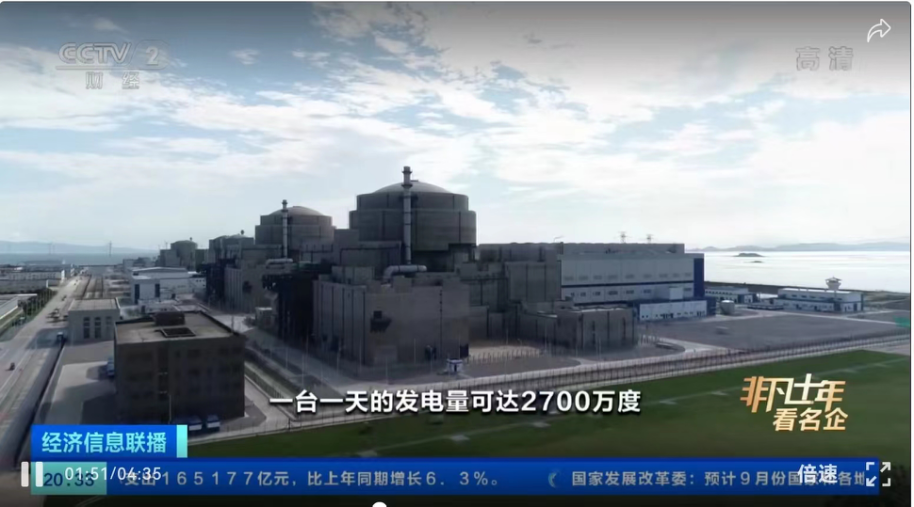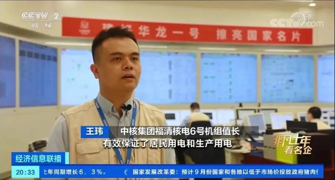 中核集团福清核电6号机组值长王玮介绍,我国自主三代核电技术华龙一号,一台一天的发电量可达2700万度,有效保障了居民和生产用电,缓解了华东地区电力供需紧张的局面。