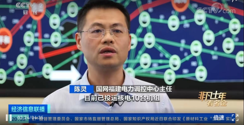 国网福建电力调控中心主任陈灵表示,2013年3月宁德核电1号机组投运,实现福建核电装机零的突破。目前已投运核电10台机组,容量1101万千瓦,装机规模全国第二,装机占比国内第一。