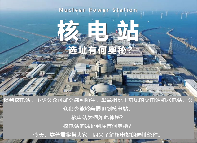 核能发电需要有非常稳定的环境、地质及人文条件,需要在核电站建设前选择一个合理的厂址,确保核电站不受到自然灾害或外部人为因素等的影响,并且在万一发生事故时,也能够有效降低对周围环境以及居民生产生活的影响,所以核电站的选址要求十分严格。