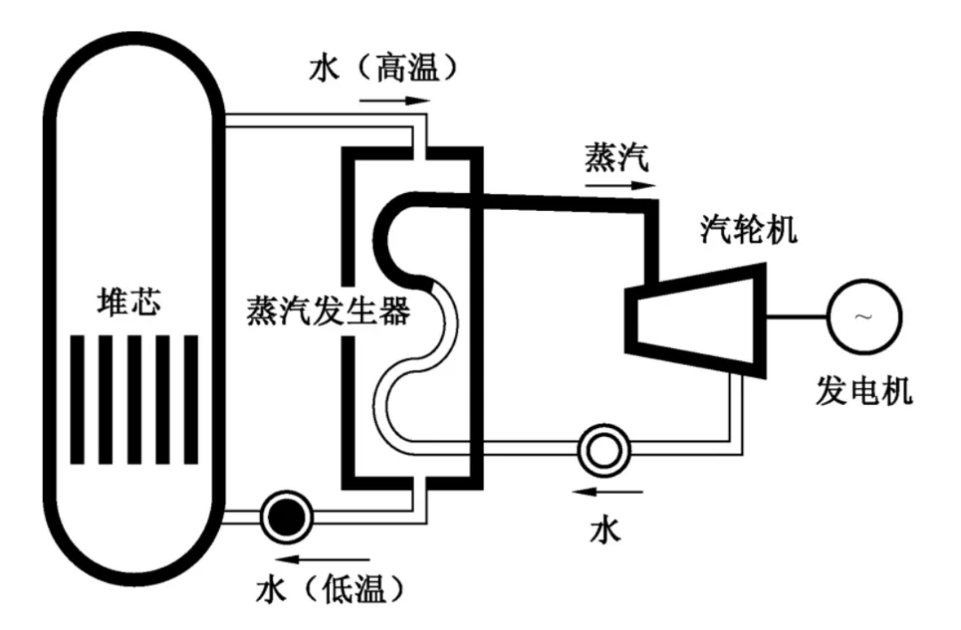 注:部分反应堆(如沸水堆)的发电过程略有差异