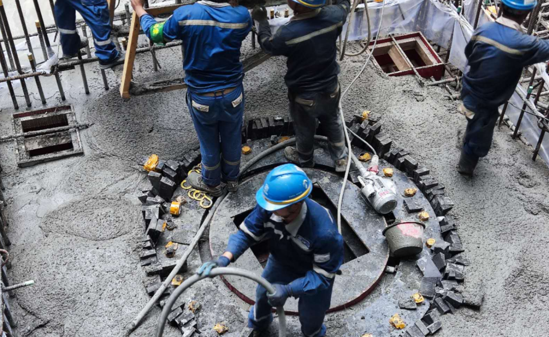 为完成反应堆0米结构目标节点,小堆项目管理团队提前组织策划,以集团“六大控制七个零”为管理指导思想,开展精细化管理提升活动。针对该目标节点,系统性采取资源保障协调、技术方案优化、施工风险推演、验收活动标准化、交叉施工协同、现场监督检查以及党建联建等组合管理措施,譬如资源保障上海南核电组织参建单位统筹资源安排,采取24小时倒班措施,保障反应堆0米结构施工稳步推进;技术上组织参建单位针对设备埋件与钢筋交叉区域开展BIM施工优化,提前调整位置,避免施工干涉;同时优化施工逻辑,策划墙、板一体化浇筑施工,在保障安全、质量的前提下合理节约了工期。