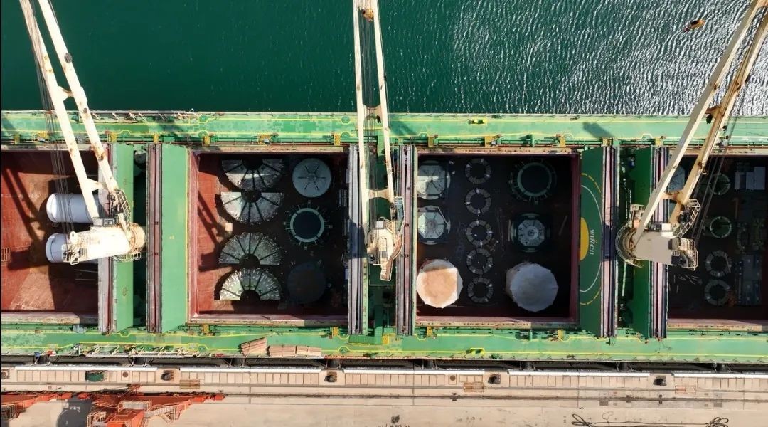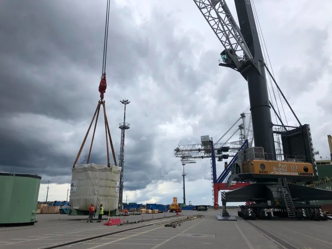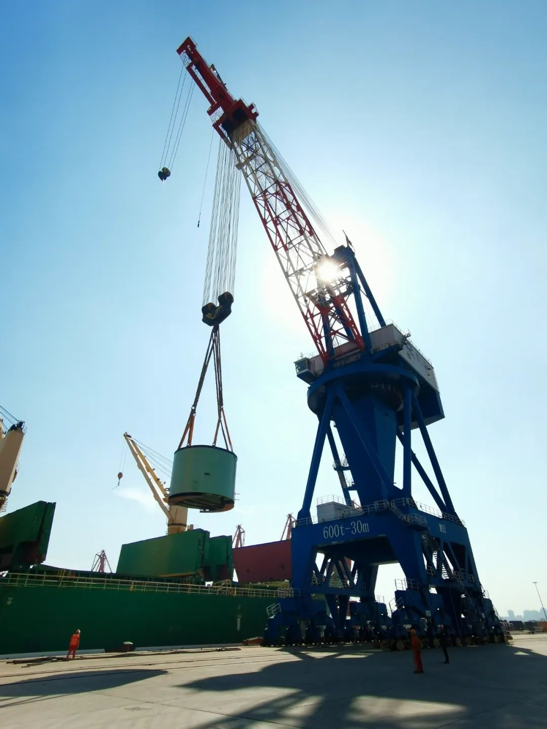 ▲装货港装船9月21日,经过12000海里的航行,满载四台VVER机组大件设备的货轮顺利抵达国内卸货港营口港锚地,9月24日停靠营口鲅鱼圈港,经过两个昼夜的不停作业,26日完成所有设备卸船工作,9月28日至29日完成驳船装船和汽车装车工作,通过水路和公路分别运往田湾现场。